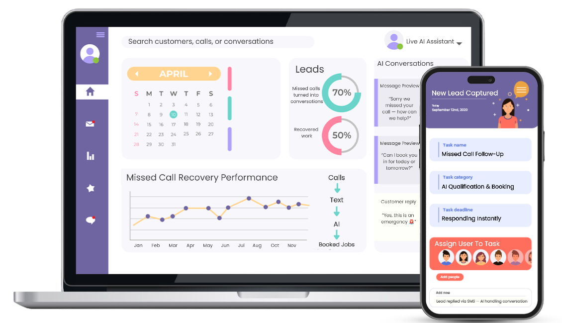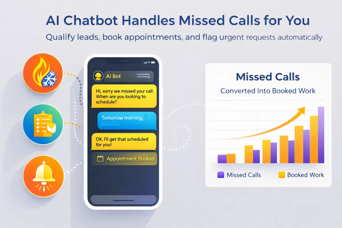 If you miss a call, we instantly follow up by text, ask the right questions, and book the job for you — while you’re busy on-site.