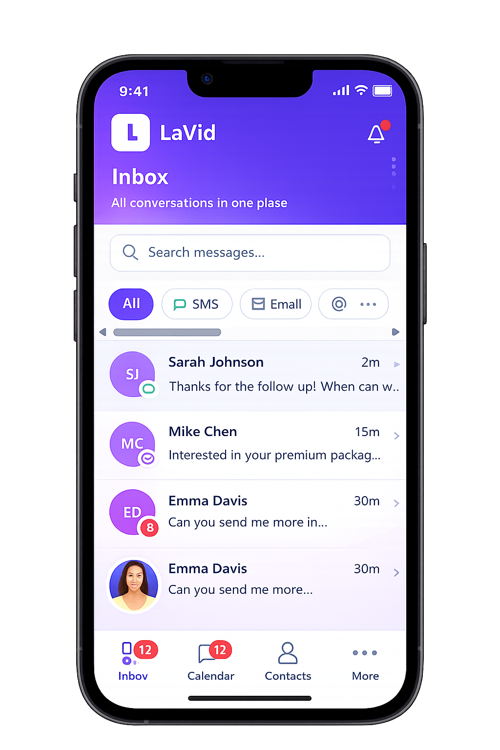 • All messages in one inbox