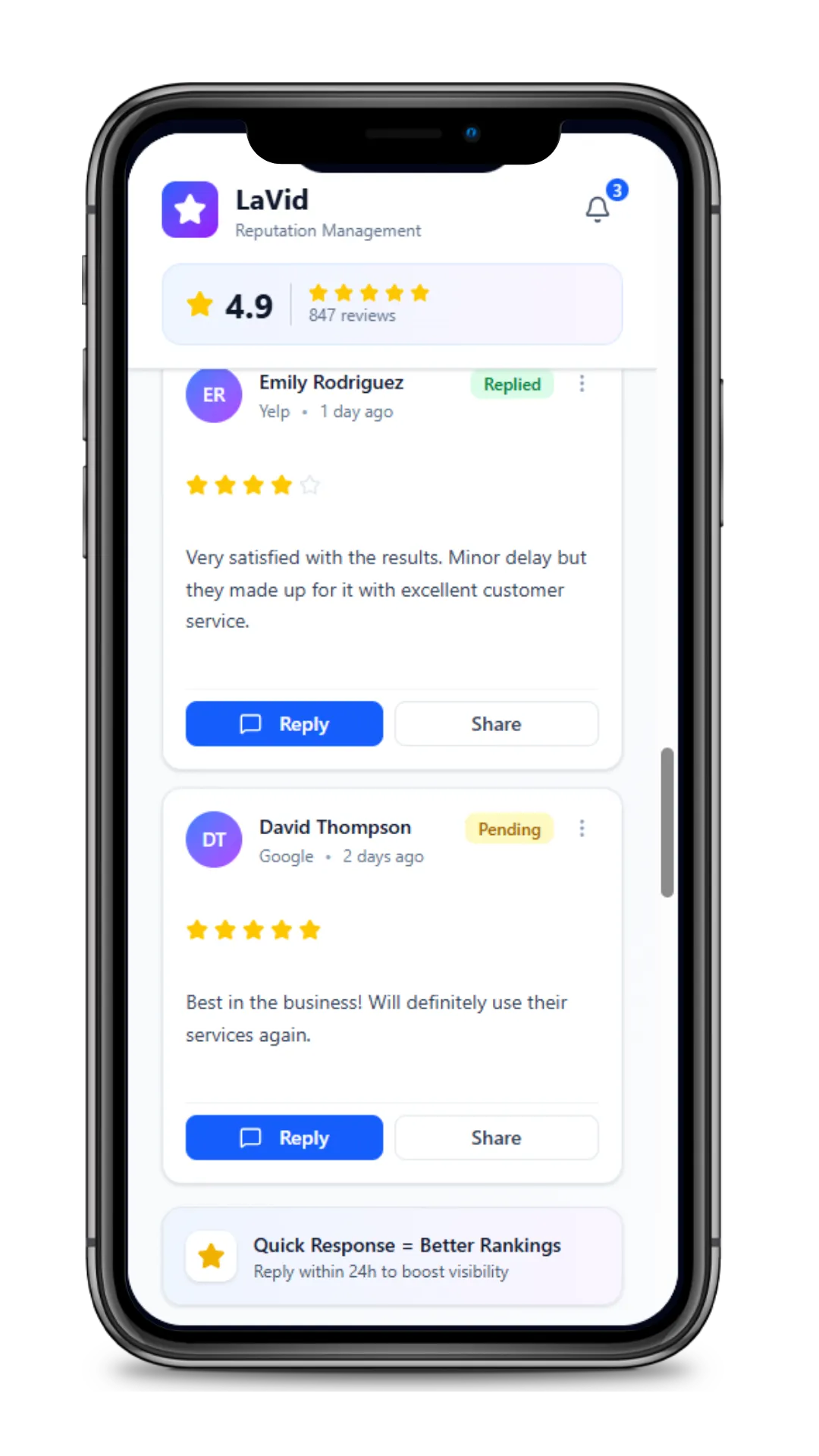 One dashboard for leads, reviews, and communication